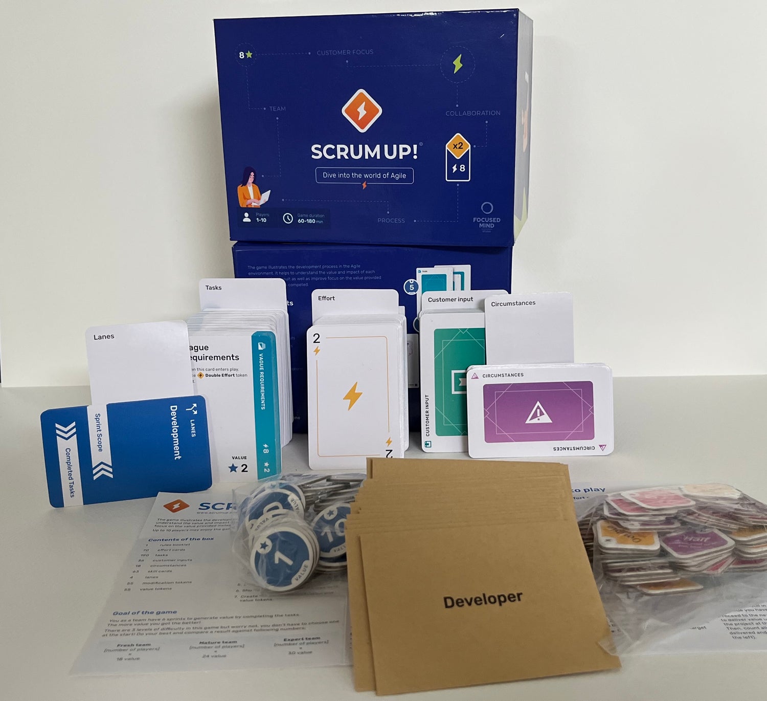 SCRUM UP! Board Game is the first in the world, physical board game created by IT veterans for IT professionals. The game empowers the team spirit and win-to-win culture via gamification.